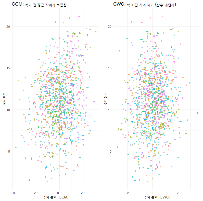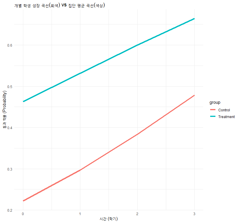이 모형을 쓰면 학교 간 차이()를 통제하고 순수한 프로그램 효과()를 더 정밀하게 추정할 수 있습니다.