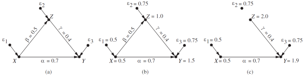 SEM은 관측 데이터 (Y,X)(Y, X)와 잠재변수 (η,ξ)(\eta, \xi)의 결합 분포를 다룹니다.